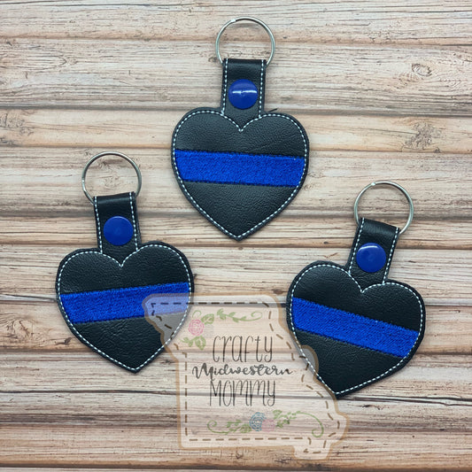 Thin Blue Line Heart Keychain