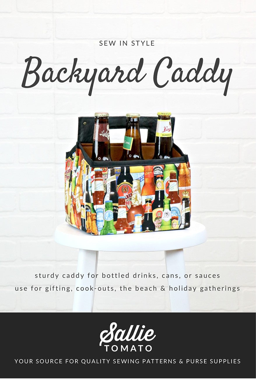 The Backyard Beverage Caddy is a quick sew, and fun to make! This caddy is designed to hold your favorite bottled or canned beverages, and even bottled sauces. It is perfect for gifting drinks or sauces to neighbors, friends, and family. Take this caddy to cook-outs, the beach or to holiday gatherings such as the Fourth of July, Birthdays, Fathers day, and more! This project is ideal for novelty quilt weight cotton prints, vinyl, cork, and kraft-tex! I would recommend making the base and handle from specialty fabrics, such as vinyl, cork fabric, or leather, to ensure accuracy and stability. The finished size is approximately 8in wide at base, 9in high, and 6-1/2in deep.