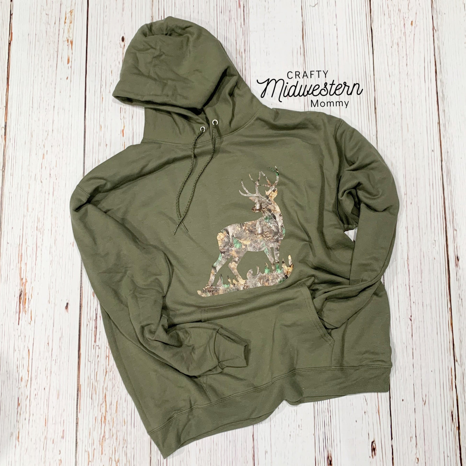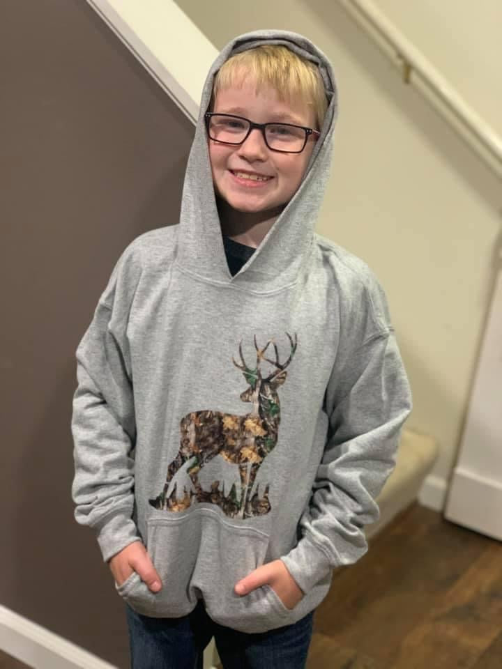 You'll be the coolest guy in the woods with our Camo Deer Hoodie! Whether you're looking for an outdoorsy gift for your dad, brother, or friend, or just something to keep yourself warm, this hoodie is perfect. With an adult and youth size available and a soft fleece lining, you'll never want to take it off. This hoodie is great for wearing hunting or hiking.