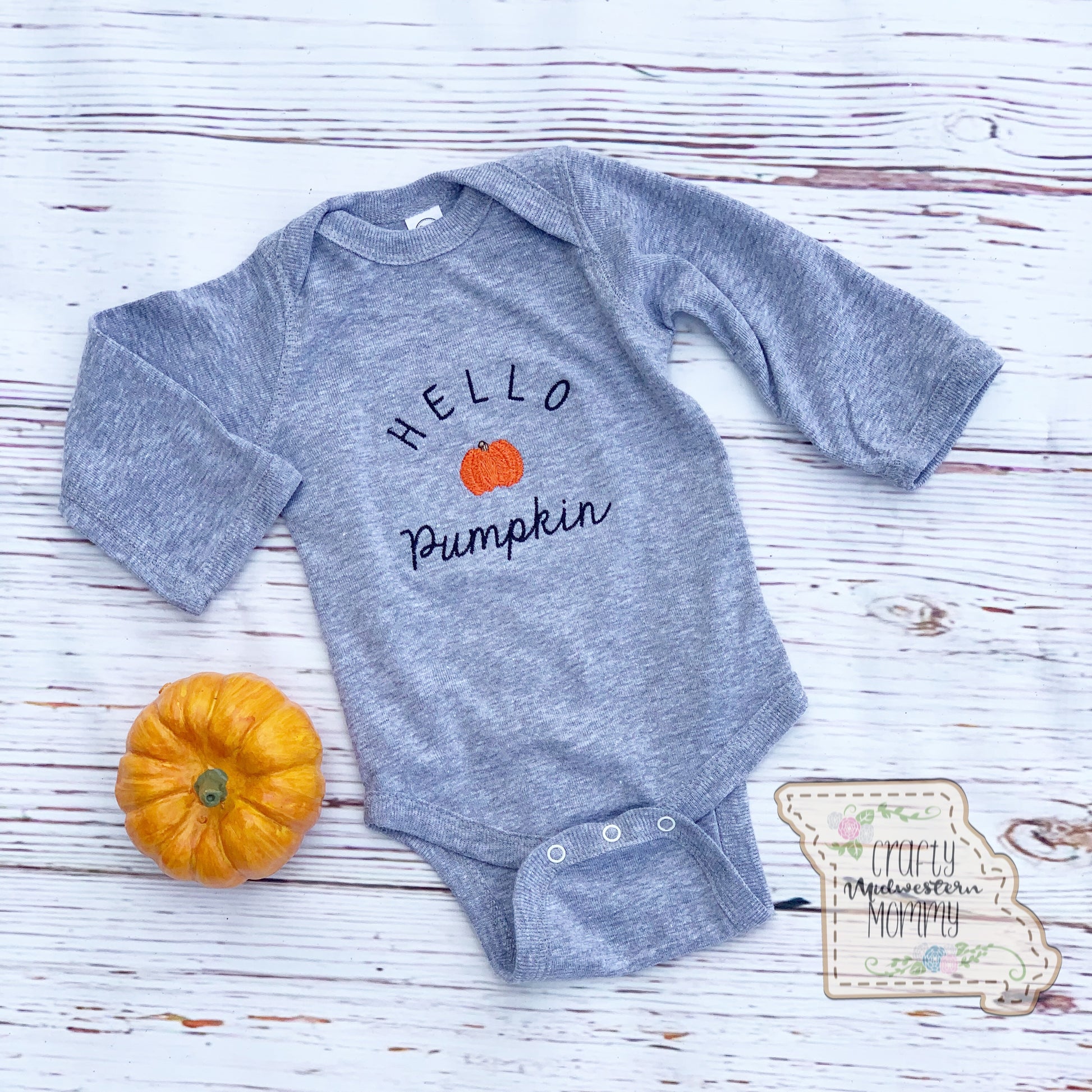 Hello Pumpkin Long Sleeve Infant Embroidered Bodysuit