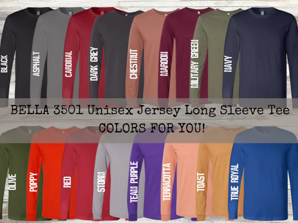 This is a unisex Bella Canvas shirt & you may choose your shirt style and color. The design will be printed in the color shown on the shirt chart (example: heather dust shirt with black design, heather deep teal with white design, etc). If no shirt color is specified, it will be made as shown in the photo (heather midnight navy).
