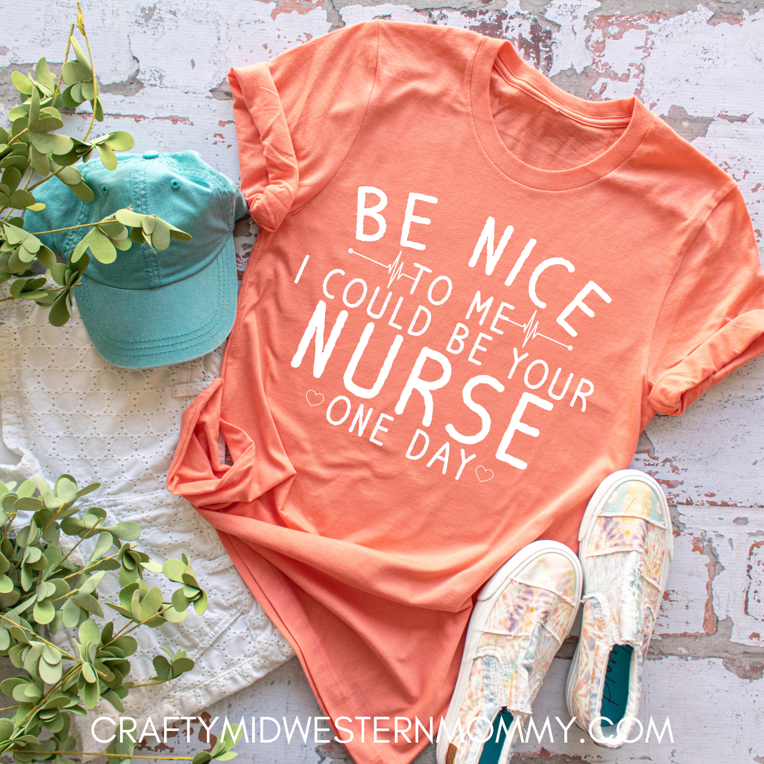 Get ready to put a smile on your patients' faces with this hilarious nurse graphic tee. Let them know you might end up taking care of them one day, so they better be nice to you. Don't worry, you'll still provide top-notch care (wink wink). Perfect for any healthcare professional with a sense of humor!