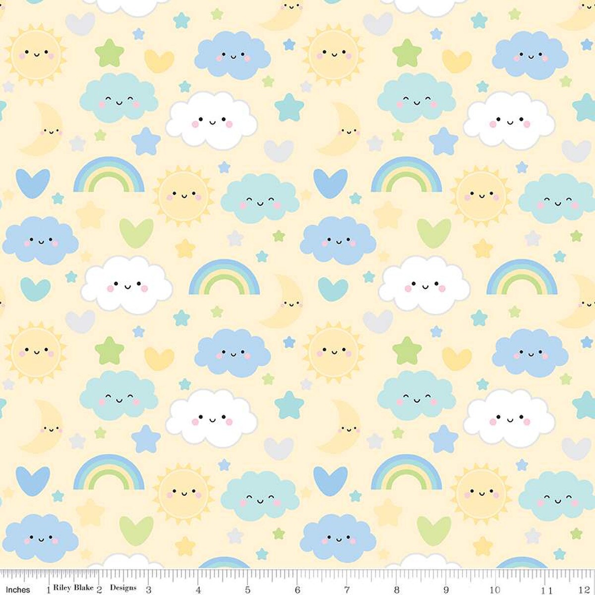 Item Description: This double napped flannel by Doodlebug Design Inc. for Riley Blake Designs is great for apparel, blankets, quilts and quilt backs. This print features suns, clouds, stars, hearts, moons, and rainbows.