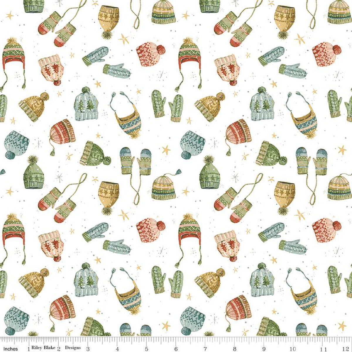 Item Description: Magical Winterland by Lisa Audit for Riley Blake Designs is great for quilting, apparel and home decor. This print features tossed hats and mittens on a snowy background.