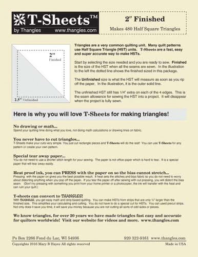 This package of 2" T-sheets will make 480 half square triangles. (HSTs)