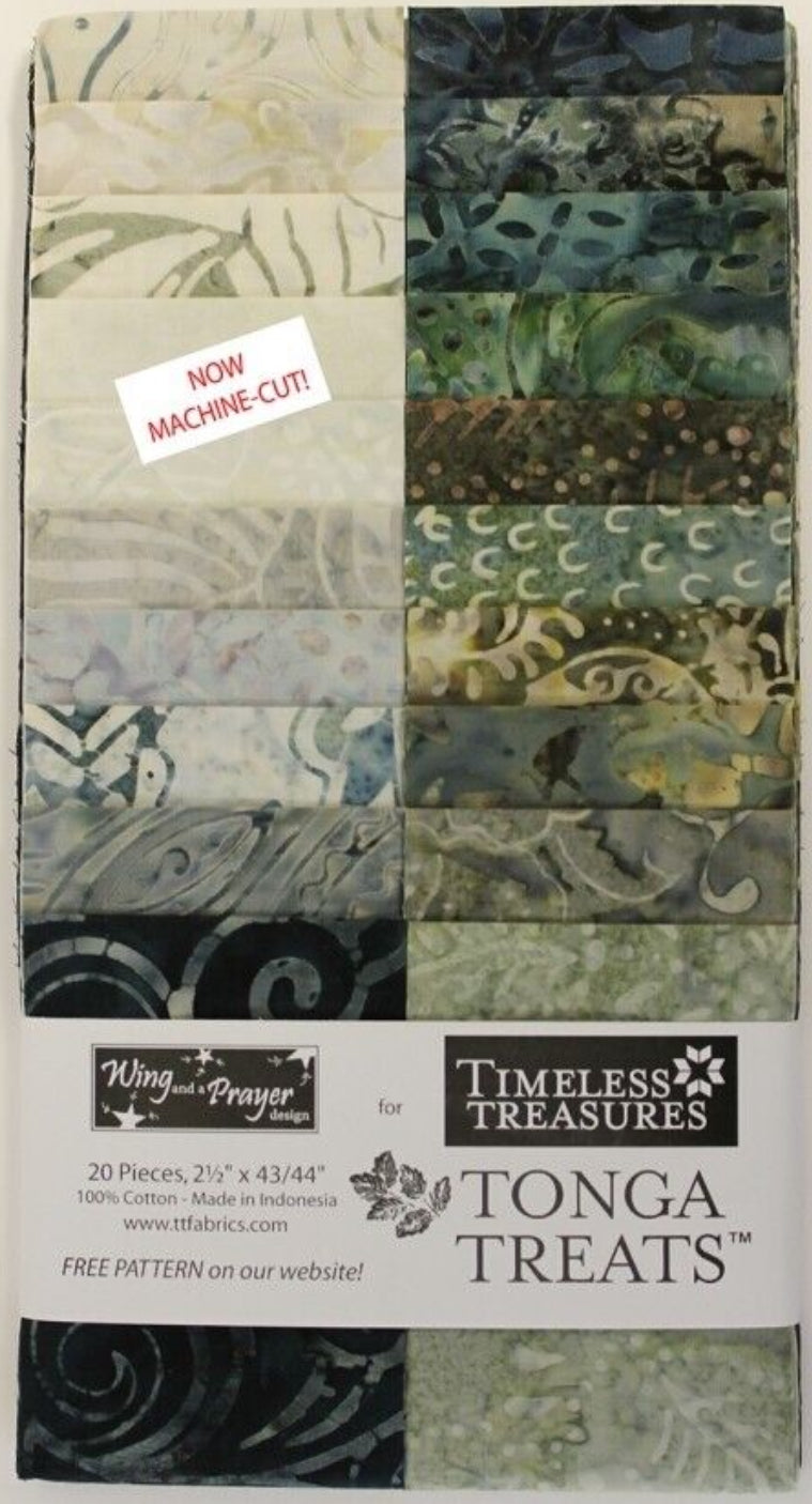 Twenty 2 1/2in strips of the Canyon batik collection by Timeless Treasrues. 100% cotton batik fabric.