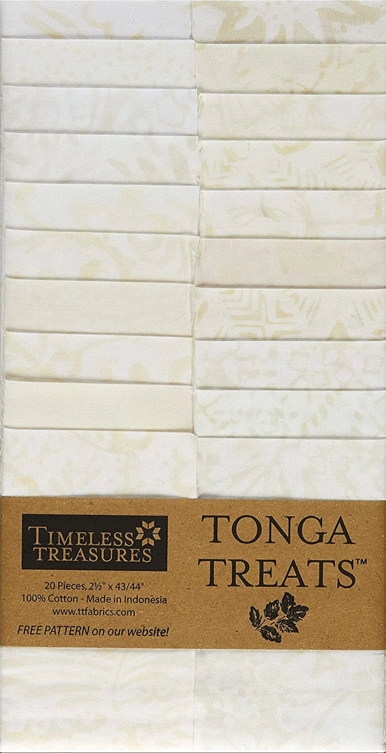 Twenty 2 1/2in strips of the Crème batik collection by Timeless Treasrues. 100% cotton batik fabric.