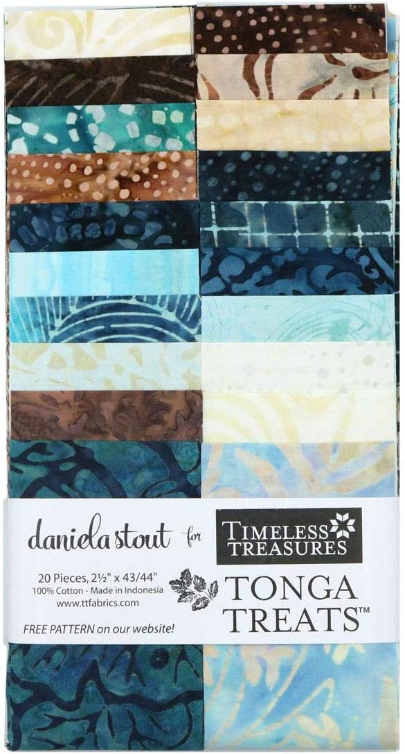 Twenty 2 1/2in strips of the Ibiza batik collection by Timeless Treasrues. 100% cotton batik fabric.