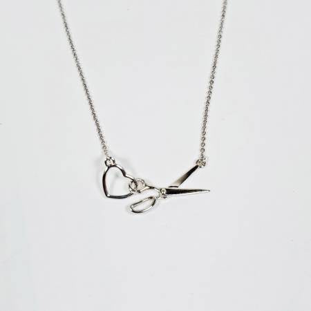 This adorable charm necklace features the scissors interlocking with the open heart charm. The Scissors measure approximately 1.25in width. Necklace length is 19in plus a 2 in extender chain so the total length can go up to 21in. Nickel Free/Hypoallergenic.